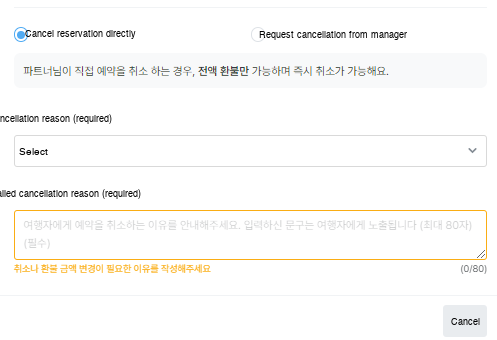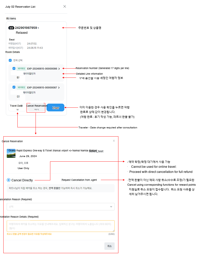 - Traveler personal information will not be displayed after 5 days from cancellation completion.