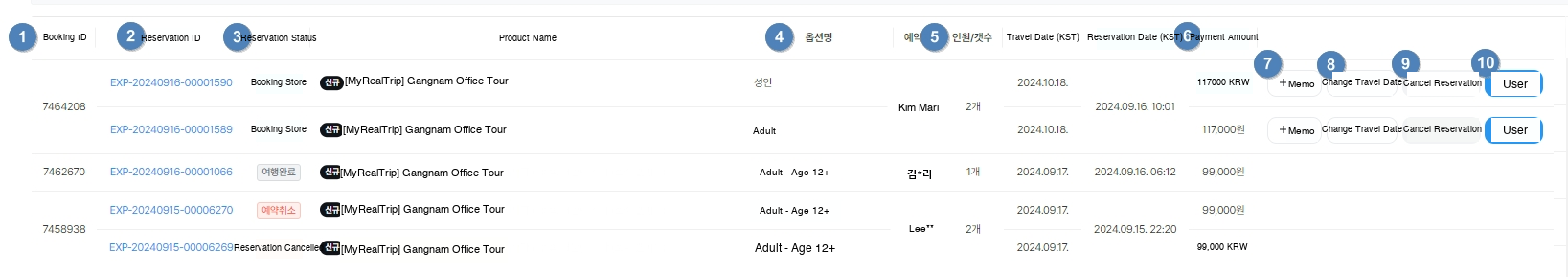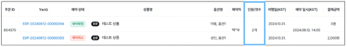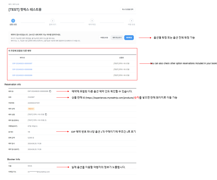 - When multiple options are purchased under one order unit (1 reservation), you can identify other option purchases at once in specific reservation details. The number of reservation numbers starting with EXP is the total purchase quantity.