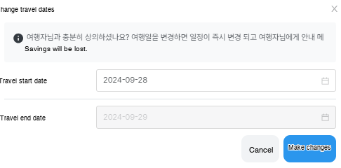 - If there is only one reservation included in the order, the travel date change window is executed immediately.
