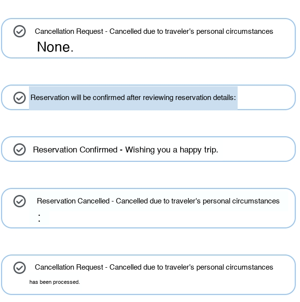 | Could only check reception/cancellation/confirmation messages without reservation number |