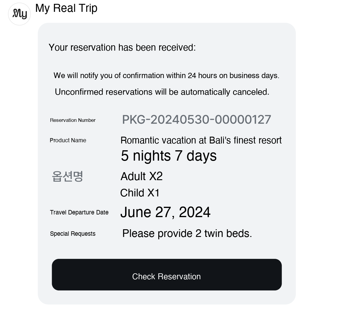 2. Reservation Completed Message