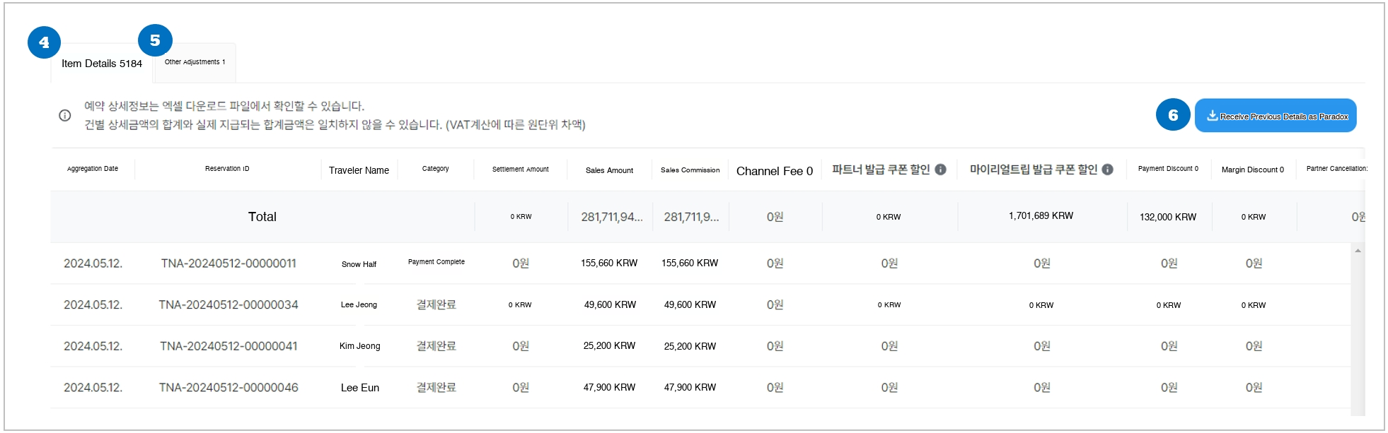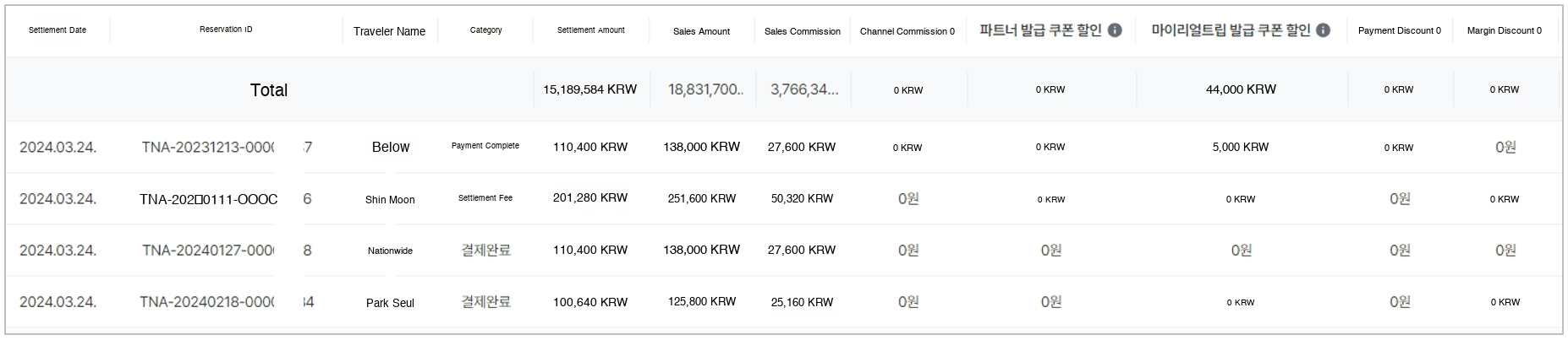 - For each booking, you can check sales commission, partner-issued coupons, partner cancellation fees, and traveler compensation amounts