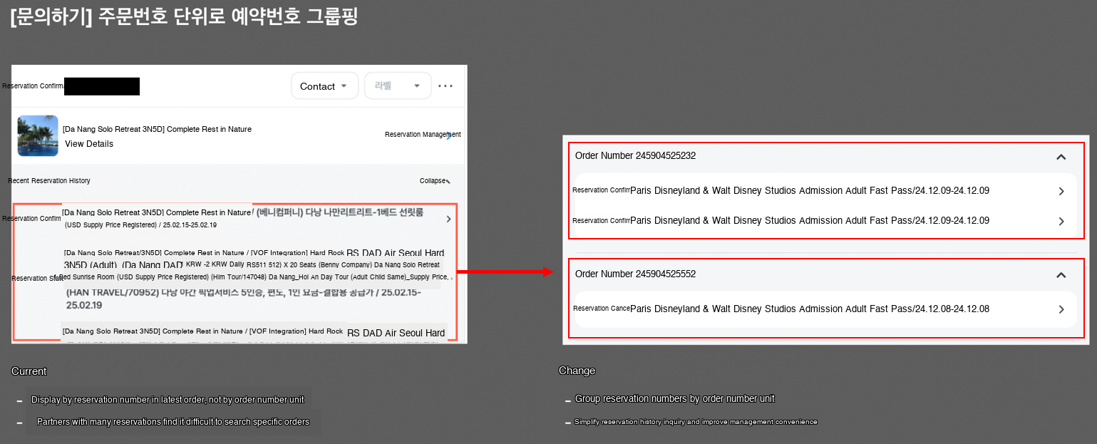 - Reservation numbers were displayed in chronological order without being grouped by order number, making it difficult for partners with many reservations to search for specific orders.