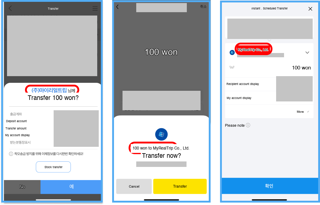 When you enter settlement account information into MyRealTrip, the system checks whether it is correct settlement account information. At this time, errors occur when it does not exactly match the account holder name entered in the bank system, including symbols and names.