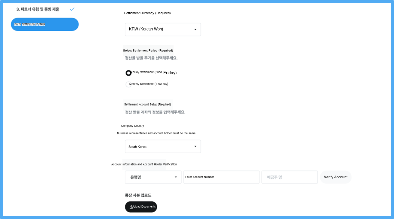 1) Enter settlement information during initial registration