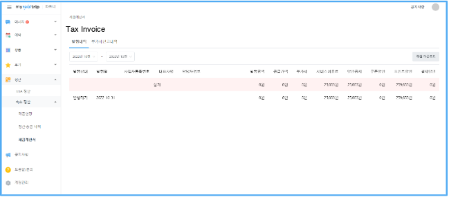 A1. MyRealTrip is a corporate business entity subject to mandatory electronic tax invoice issuance. Even without a separate request, tax invoices are automatically issued by the 10th of each month based on the tax invoice information entered during partner registration.