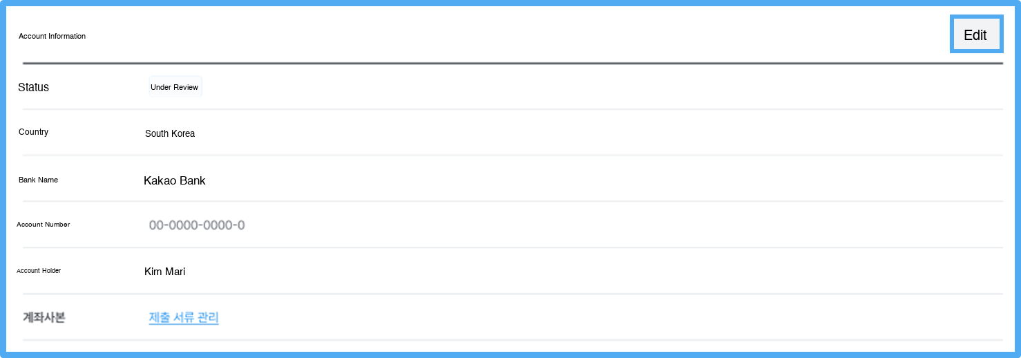 2) Please click the 'Edit' button to proceed with modifying your settlement account.