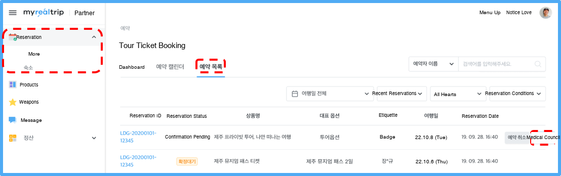 4) Clicking on a reservation in the [Reservation List] menu will take you to the reservation details page.