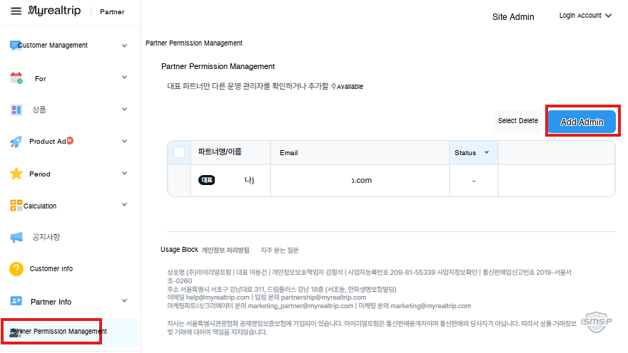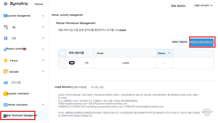 Step 1. Partner page login β Partner permission management β Add operation manager