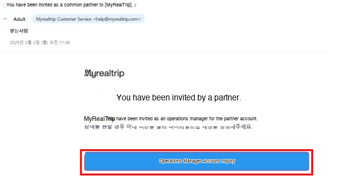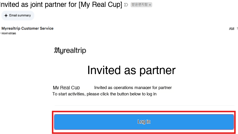 Step 3. Invited operator checks email β Click 'Login' (Since there is an existing account, the separate registration process can be skipped.)