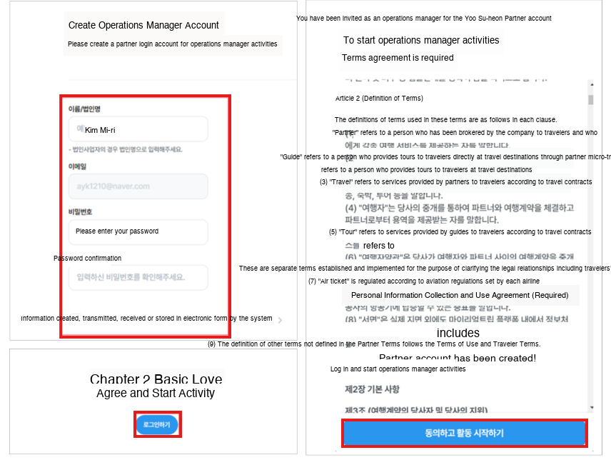 Step 4. Account registration (enter information) β Confirm and complete terms agreement