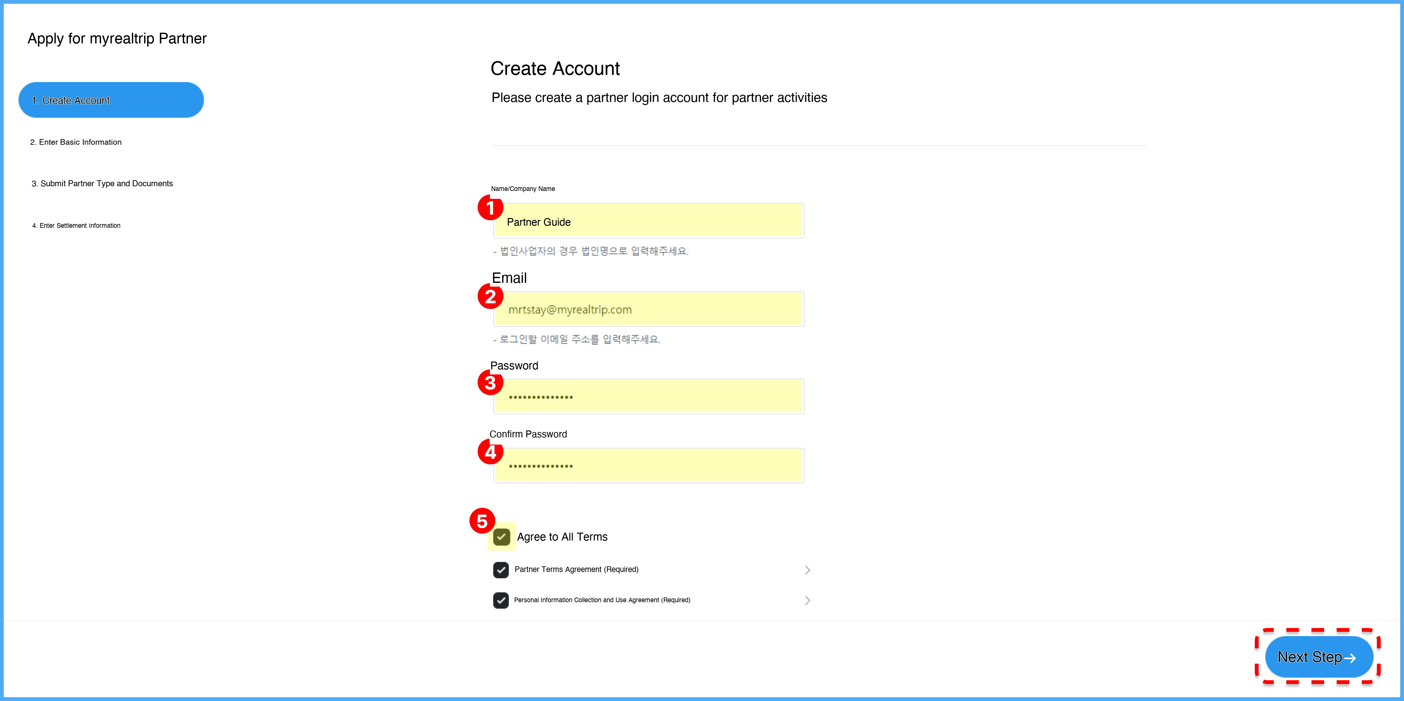 β€ Terms Agreement: Check the terms and agree.