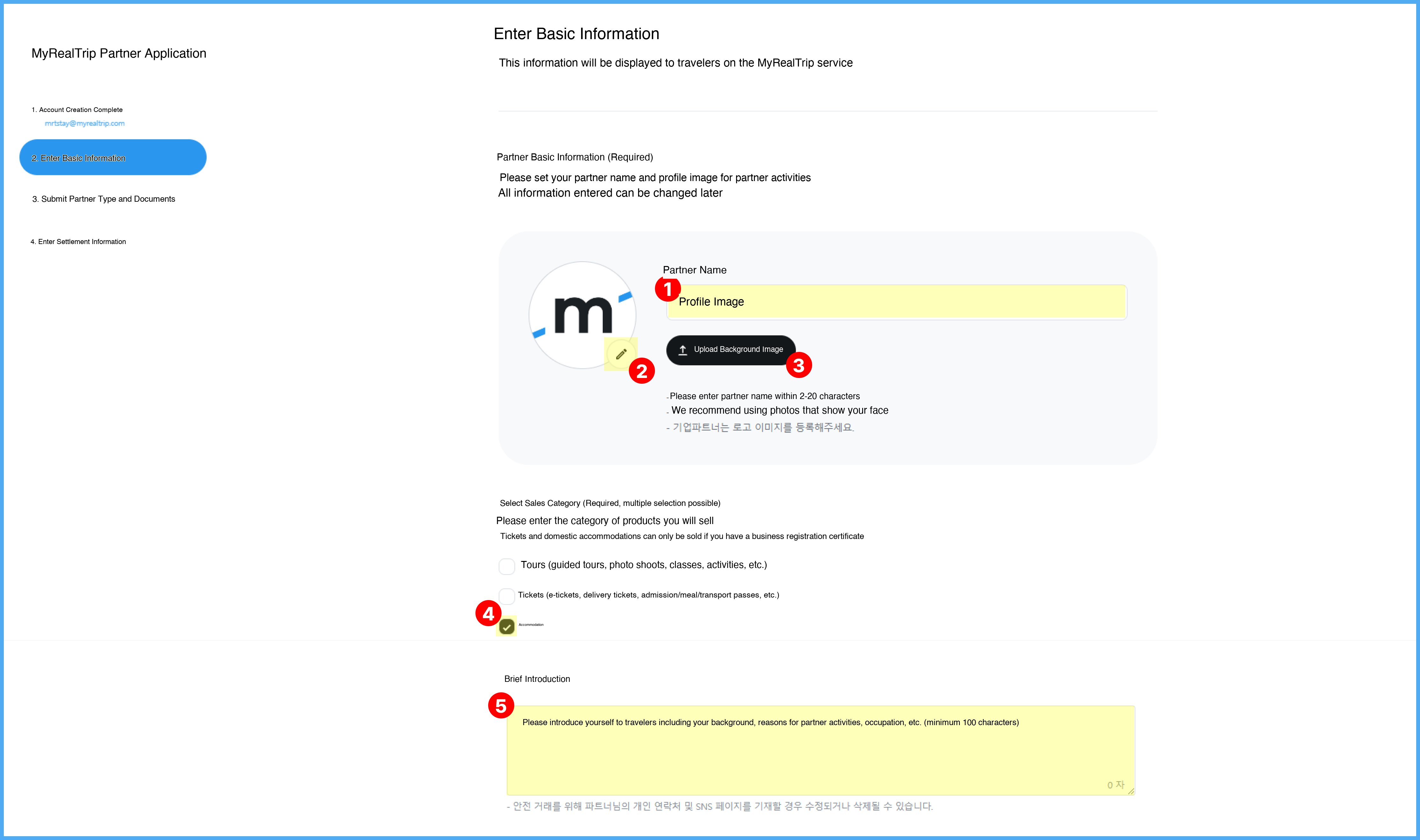 5) Submit partner type and supporting documents.