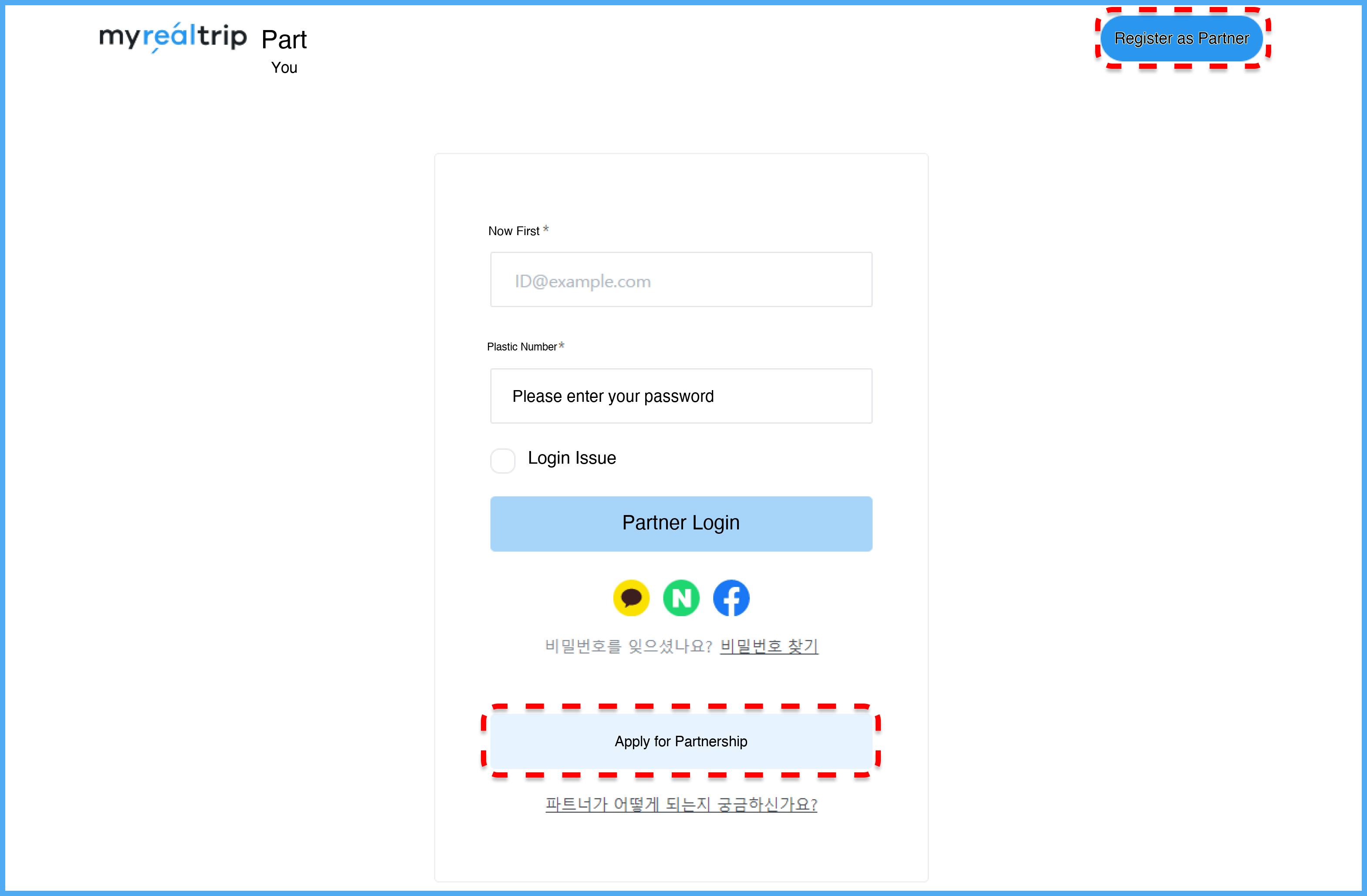 1) On MyRealTrip, click [Partner Login].