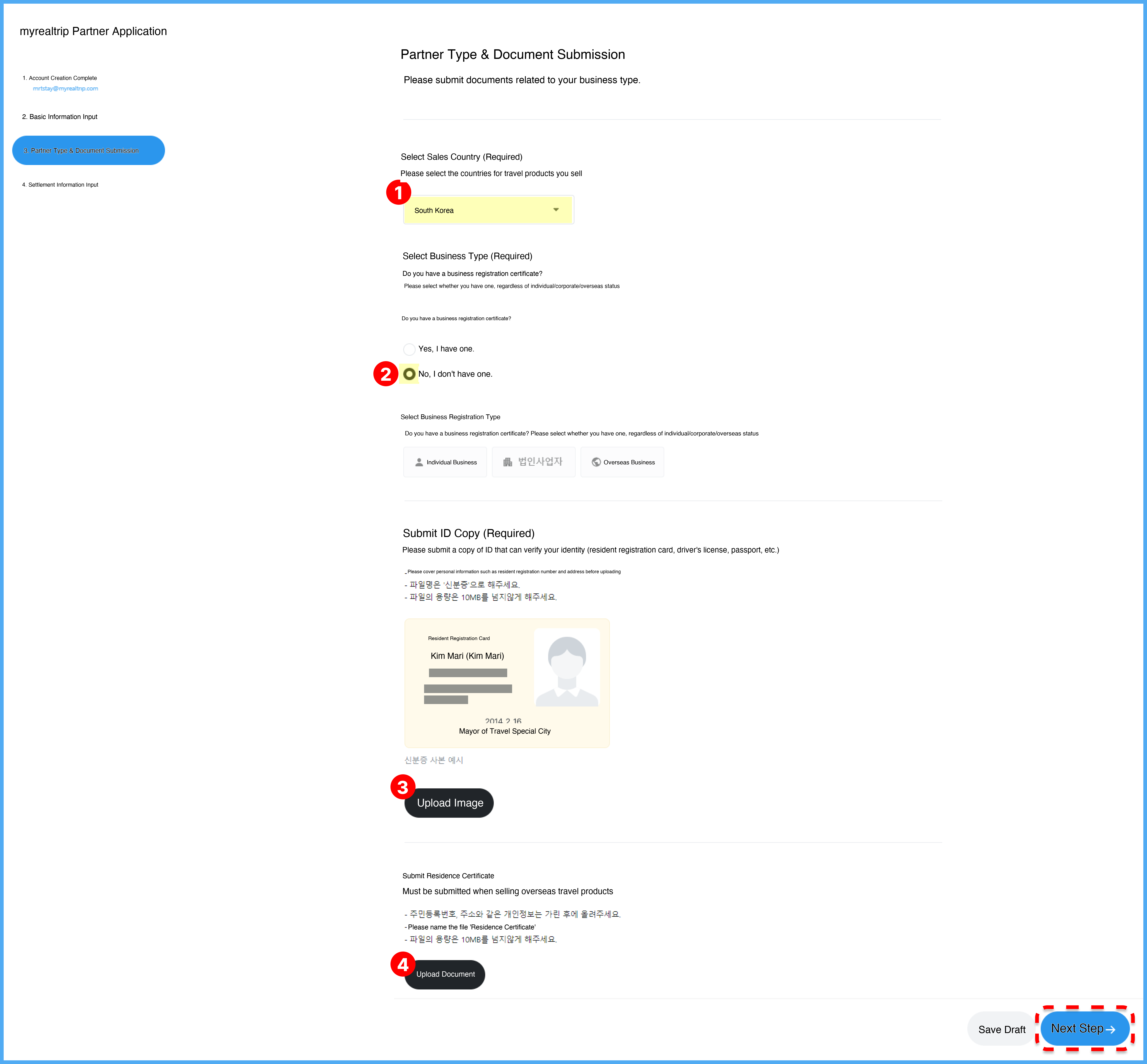 β’ ID Submission: Upload a copy of your ID (resident registration card, driver's license, passport).