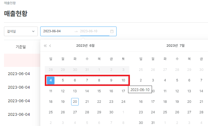 Step 2. 날짜를 정산 주기에 맞게 설정