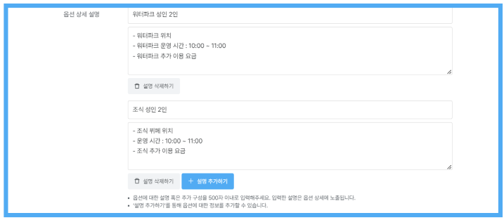 [설명 추가하기]를 클릭하여 여러 개의 설명을 추가할 수 있습니다.