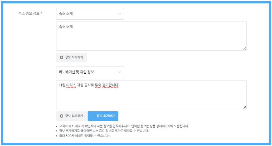 - [정보 추가하기]를 클릭해서, 다른 숙소 중요 정보를 추가로 입력할 수 있습니다.