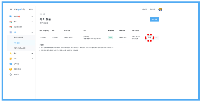 - [정보 삭제하기]를 클릭해서, 등록한 숙소 중요 정보를 삭제하실 수 있습니다.