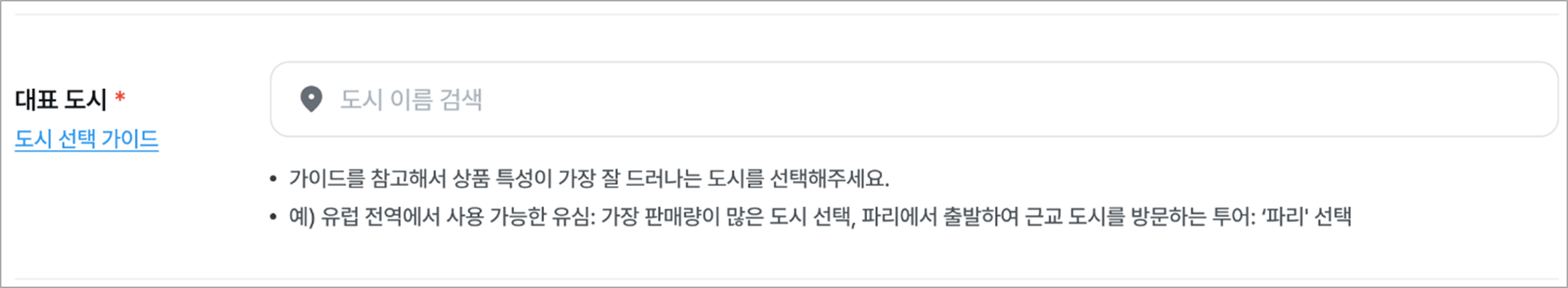 모든 상품은 등록할 때 대표 도시 정보를 필수로 등록해주셔야 합니다.