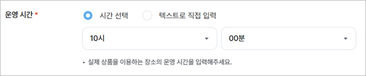 - (예시) 오전/오후 스냅을 1개의 상품으로 판매하여 만나는 시간 정보를 “오전 10시, 오후 14시”와 같이 텍스트로 작성한 상품