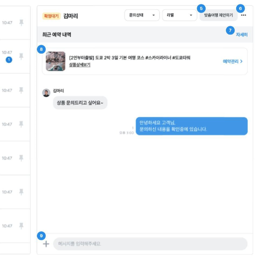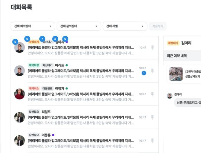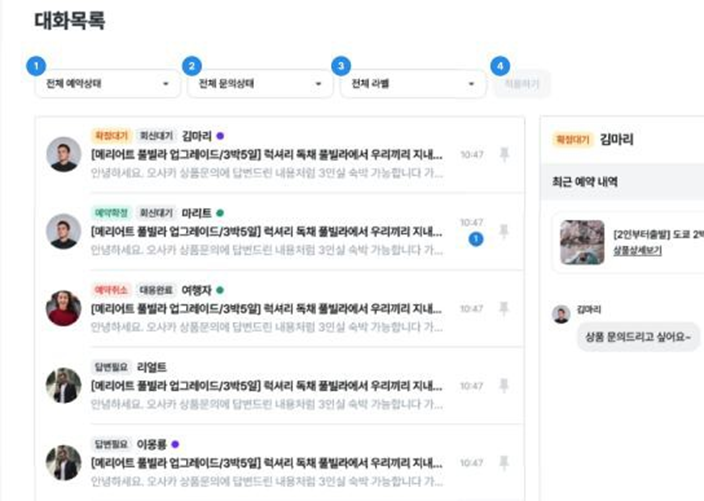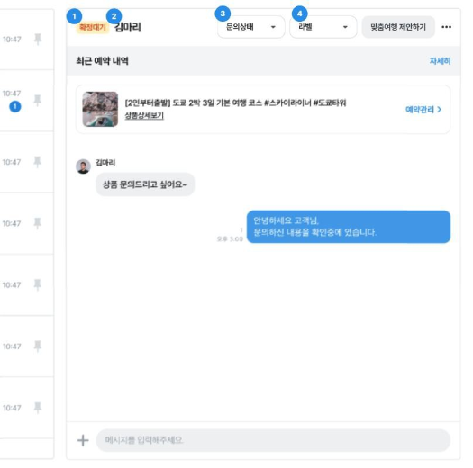 4) 대응 완료 : 여행자 문의 대응을 완료한 상황에 지정, 신경쓰지 않아도 될 대화방