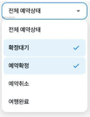 · 유형 : 전체 예약상태, 확정대기, 예약확정, 예약취소, 여행완료