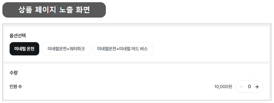 - (예시) 미네럴 온천, 미네럴 온천+워터파크, 미네일 온천+미네럴 머드 바스