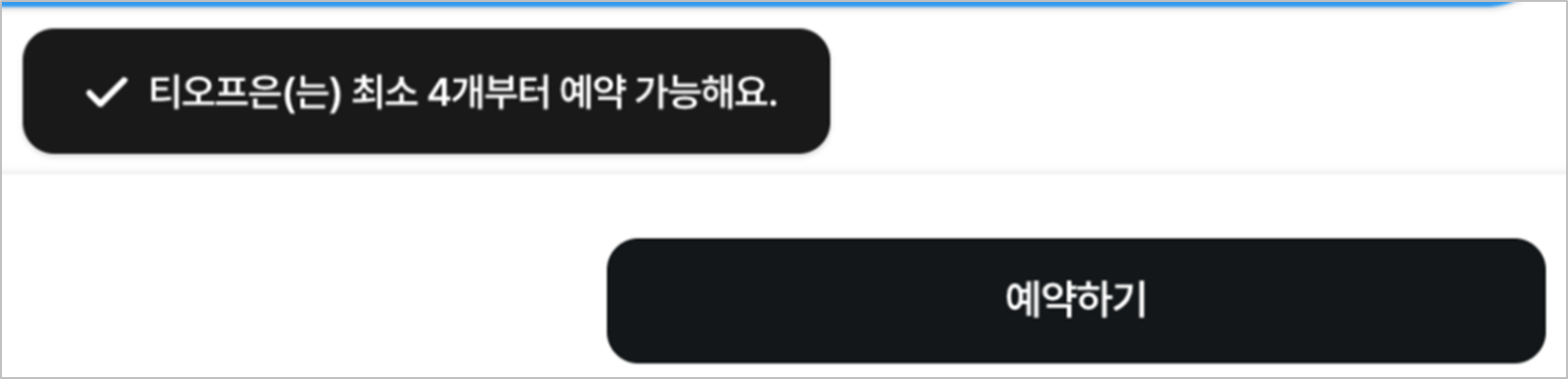 - 최소 구매 수량보다 적게 설정할 경우 아래와 같은 팝업 메시지가 발생합니다.