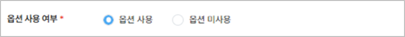 - 옵션명 : 2개 설정 (필수 옵션) + 일부 옵션 미사용 설정