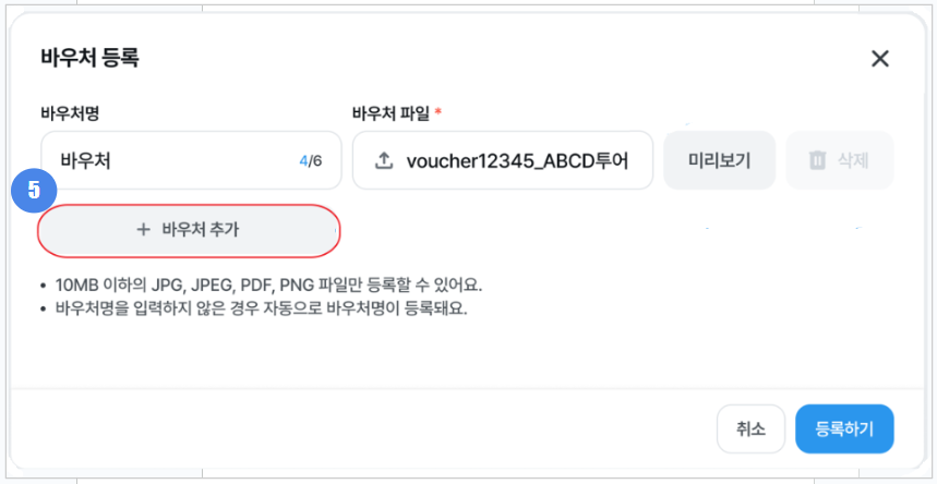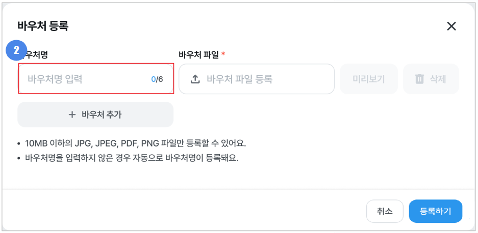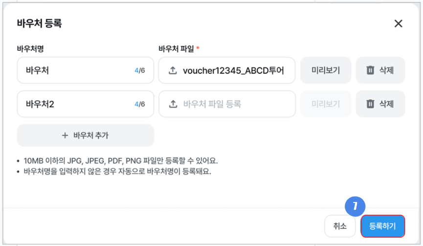 - 바우처 파일은 개당 최대 10mb 까지 등록할 수 있습니다.