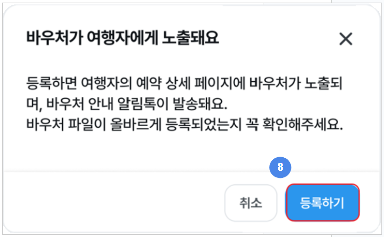 - 바우처를 등록하면 여행자에게 바우처 등록됐다는 메시지가 발송됩니다.