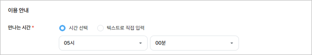 [만나는 시간 : 텍스트로 입력(시간 미지정) 설정]
