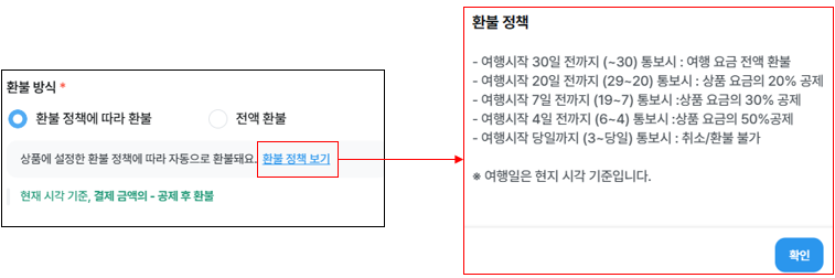- 상품의 환불 규정에 관계 없이, 여행자에게 결제 금액 100% 환불 처리됩니다.