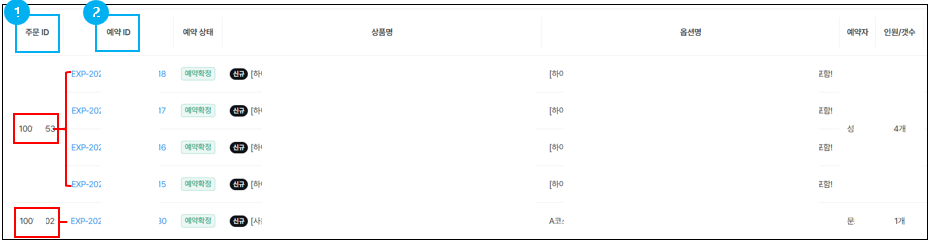 - 즉, 주문 ID는 1건이지만 예약 ID는 여러 개일 수 있습니다.