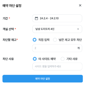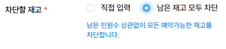|  - 남은 인원 수와 상관없이, 선택 기간의 모든 예약 가능한 재고를 전부 차단합니다.