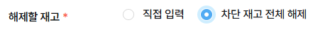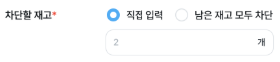 | | 차단할 재고 입력 | - [직접 입력]과 [남은 재고 모두 차단] 2가지 방법이 있습니다.