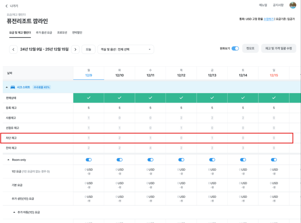 - 경로: 파트너 페이지 → [요금/재고 관리] → [숙소] 메뉴